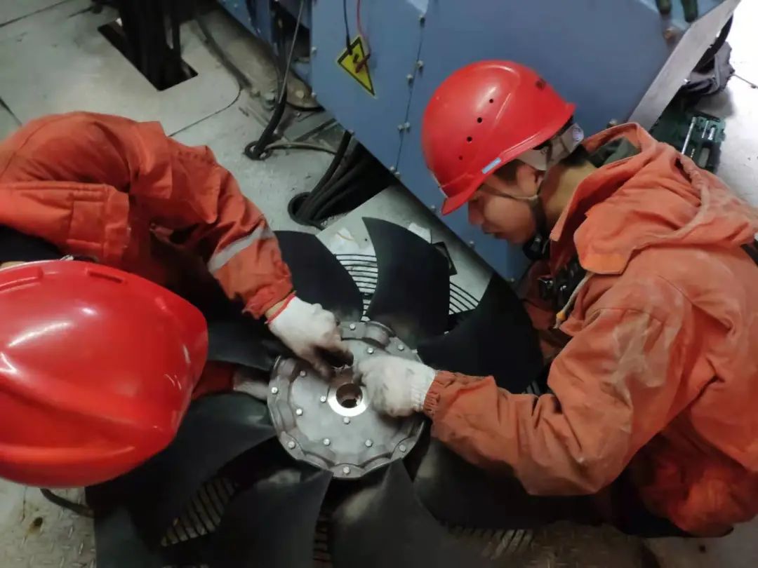 臨近春節(jié),運行人員林正杰帶領班組成員例行巡檢,這時監(jiān)控主機報警顯示9號風機液壓油位低、系統(tǒng)壓力低故障,經(jīng)現(xiàn)場排查后判定為高速閘漏油?!翱赡苁敲芊馊匣瘜е侣┯?,我們要馬上進行搶修”只見林正杰說完,轉(zhuǎn)身沖向設備間方向,攜帶特定維修工具與運行班組驅(qū)車前往故障點。